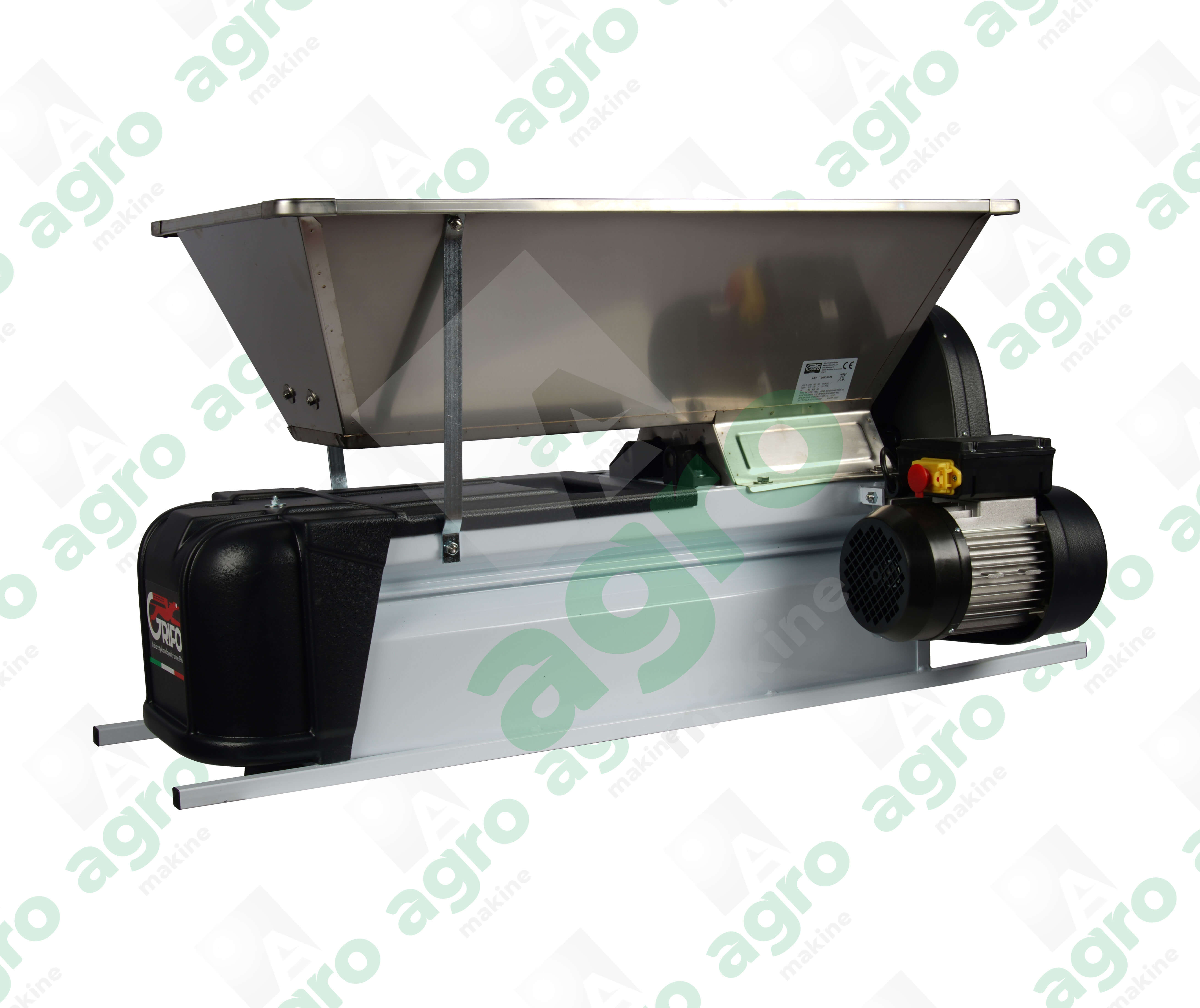 DMCSI model üzüm patlatma ve sap alma makinesi preslenecek üzümün preslemeye hazır hale getirilmesi için kullanılan, üzümün sıkıştırılıp patlatılması ve sapının üzüm danesinden ayıran iyi dizayn edilmiş, kompakt bir sap ayırma, ezme makinesidir. 220 V ev elektriğiyle çalışan 1 hp gücündeki motordan güç alan makinenin üzüme temas eden tüm kısımları yüksek kaliteli, gıdaya uygun paslanmaz çelikten üretilmiştir.